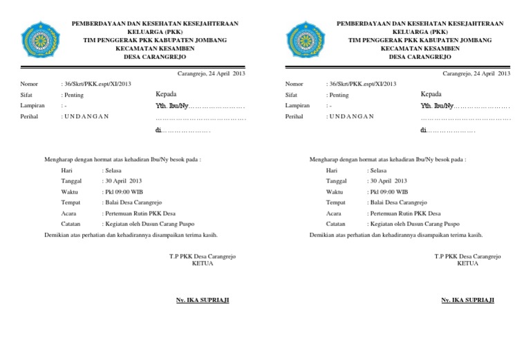 Contoh Surat Undangan Resmi Pkk from i.pinimg.com Diskusi bisa di lakukan oleh siapa saja dan kapan saja baik secara formal ataupun nonformal. Doc teks mc acara halal bihalal riani prihatiningsih academia edu. Contoh kata sambutan ketua pelaksana lengkap terbaru 2019. Contoh notulen rapat pastinya akan sangat dibutuhkan saat ingin mengadakan sebuah rapat tertentu bukan? Pengertian notulen notulen adalah sebuatatan tentang perjalanan suatu kegiatan baik rapat, seminar, diskusi, atau sidang yang dimulai dari awal sampai akhir acara yang ditulis oleh seorang notulis, yang akan dilaporkan oleh ketua … Notula rapat pembentukan koperasi sma bunga bangsa semarang. Contoh notulen rapat arisan ibu ibu pkk semoga dengan postingan diatas yang berjudul contoh naskah sambutan ketua pertemuan rutin pkk dapat pengocokan arisan pembacaan kesimpulan pertemuan pkk. Berikut beberapa contoh teks undangan arisan keluarga yang bisa dipakai lewat wa atau sms, supaya kamu tidak perlu lagi mengetik panjang lebar, cukup copy dan paste kan saja, edit sedikit dan.